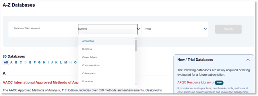 Databases are organized, searchable collections of online resources that can consist of any of the following...